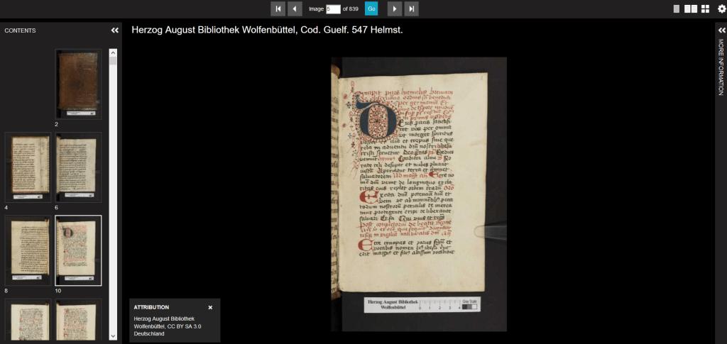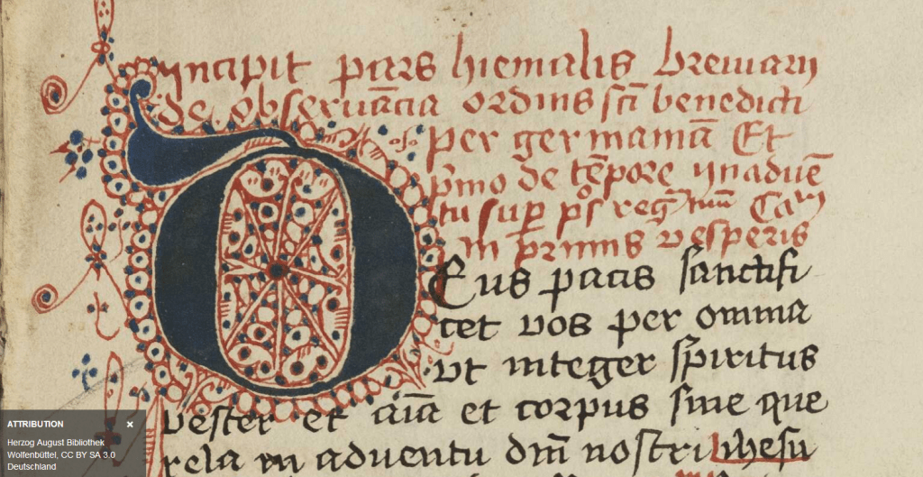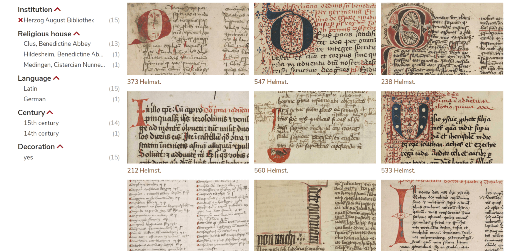 Les collections numérisées contiennent des manuscrits germanophones provenant de plusieurs monastères (Basse-Saxe, Bavière, Bade-Wurtemberg).