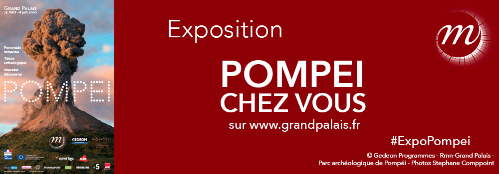 En raison de l’épidémie de Coronavirus, l’exposition sur Pompéi n’a pu ouvrir ses portes à la date prévue au Grand Palais. Afin de permettre au plus grand nombre de profiter tout de même de l’exposition, le Grand Palais en propose une visite virtuelle depuis le 25 mars 2020.
