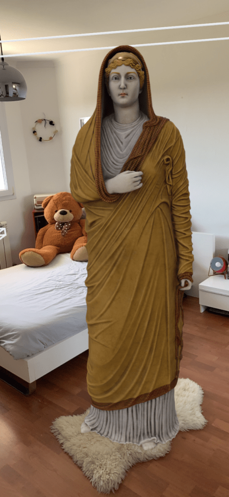 - Une expérience de réalité augmentée faisant apparaître la sculpture “Livie” chez vous. Pour vivre cette expérience, rendez-vous sur cette page et suivez les instructions en cliquant sur le lien ou en scannant le QR Code.
