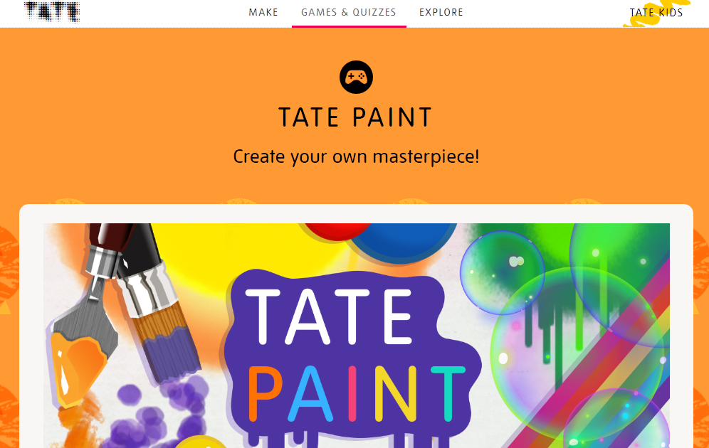 Il s’agit d’un site internet dédié aux enfants et à leurs parents proposant une multitudes d’activités artistiques gratuites, des quiz, des films et des ressources éducatives. Le site internet est disponible ici. Ainsi les enfants peuvent s’initier à l’art de façon ludique tout en restant chez eux. Par exemple, il est possible de de réaliser du tissage comme Anni Albers, du collage comme Henri Matisse ou encore de fabriquer du papier marbré avec de la mousse à raser, une peinture au chocolat inspirée de Jackson Pollock ou encore sa propre peinture à la pirouette inspirée de Damien Hirst, à l’aide d’une essoreuse à salade.
