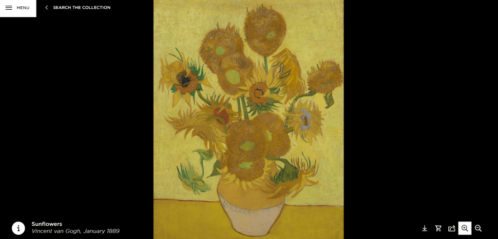 L’institution offre un beau panorama des œuvres de l’artiste hollandais. Il est possible d’accéder, via le site internet du musée, à plusieurs des plus grands chefs-d’œuvres du peintre Vincent Van Gogh, tels que les Tournesols, Les mangeurs de pommes de terre ou encore Le semeur. Chaque tableau peut être zoomé, ce qui permet d’identifier certains détails. Il est également possible de consulter une fiche explicative sur l’œuvre en question pour approfondir ses connaissances.
