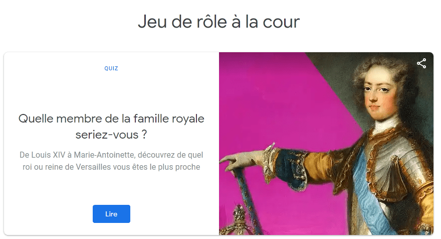 Le célèbre Château de Versailles a décidé d’ouvrir ses galeries en proposant une promenade interactive et temporelle. Sur le site internet du monument, nous pouvons retrouver au sein de la rubrique “Découvrir”, différents contenus multimédias sur des lieux à ne pas manquer. Par exemple, il est possible de visiter la Galerie des Glaces, le Hameau de la Reine ou encore les jardins et ses fontaines. Vous pouvez également accéder à la visite virtuelle en vous rendant directement sur Google Art & Culture où sont répertoriées plusieurs expositions, contenant plus de 22 000 œuvres du Château, ainsi que des jeux. Toutes les collections sont d’ailleurs accessibles gratuitement en ligne sur le site du monument. Par exemple, vous pourrez découvrir le célèbre tableau représentant Louis XIV ou encore le mobilier de Marie Leszczynska.