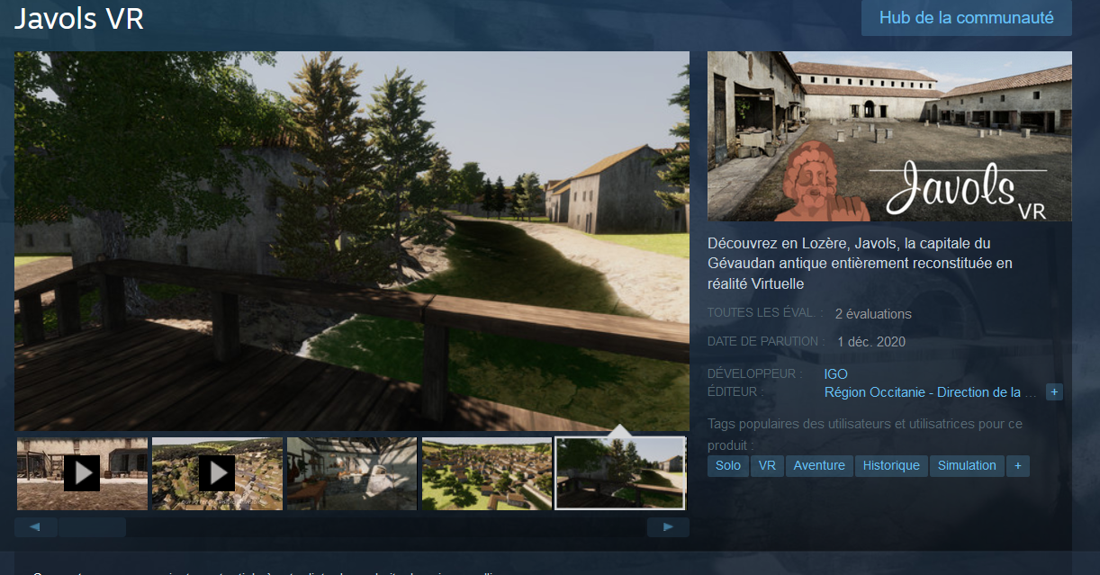 Après deux ans de travaux, Javols VR est lancée et propose ainsi aux adeptes de la VR de voyager dans l’Antiquité et de visiter la ville à pied ou à vol d’oiseau. Pour tester l’expérience, il faut se rendre sur steam, ici.