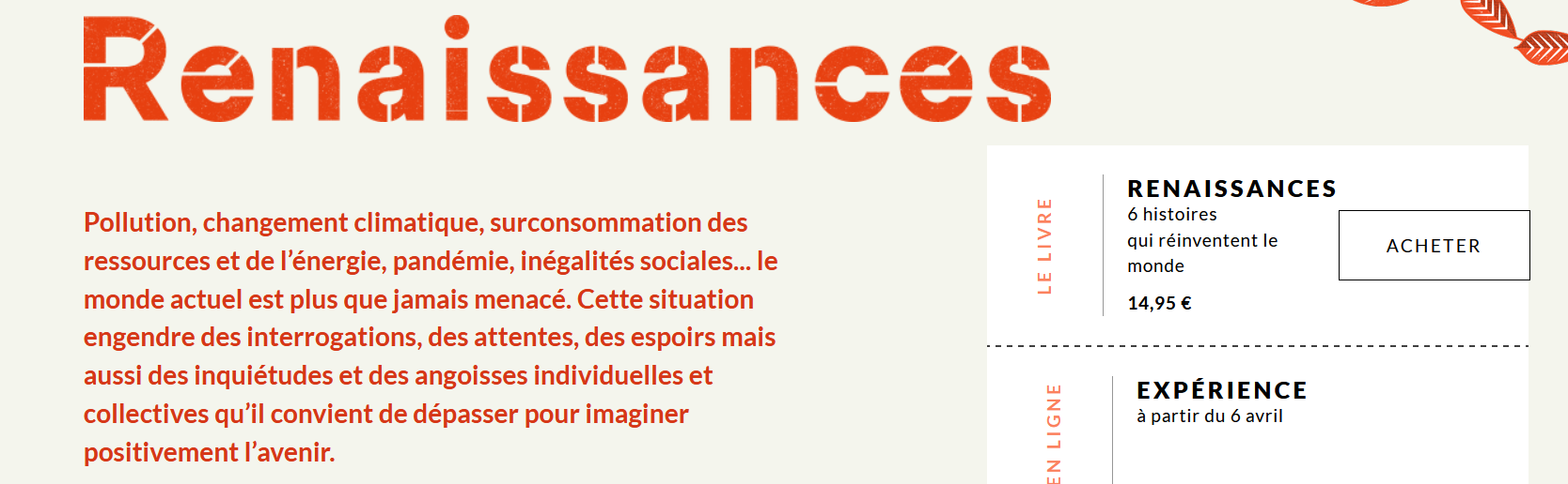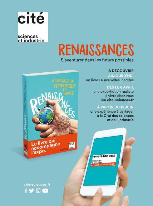 En 2021, la Cité des Sciences et de l’industrie propose un nouveau système d’exposition se déroulant en trois temps. En effet, l’exposition Renaissances n’ouvrira que ses portes le 15 juin 2021, en raison des conditions sanitaires, mais pour patienter deux événements la précéderont : une version numérique et un recueil de nouvelles inédites.