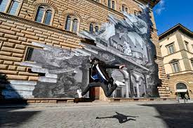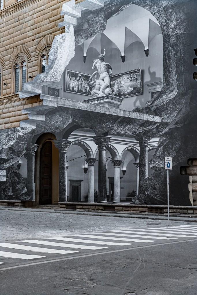 En raison de la pandémie de Covid-19, les musées italiens ont à nouveau fermé leurs portes. Pour faire patienter les visiteurs, le street artiste français JR a dévoilé fin mars 2021 un trompe l’œil sur l’un des monuments emblématiques de Florence.